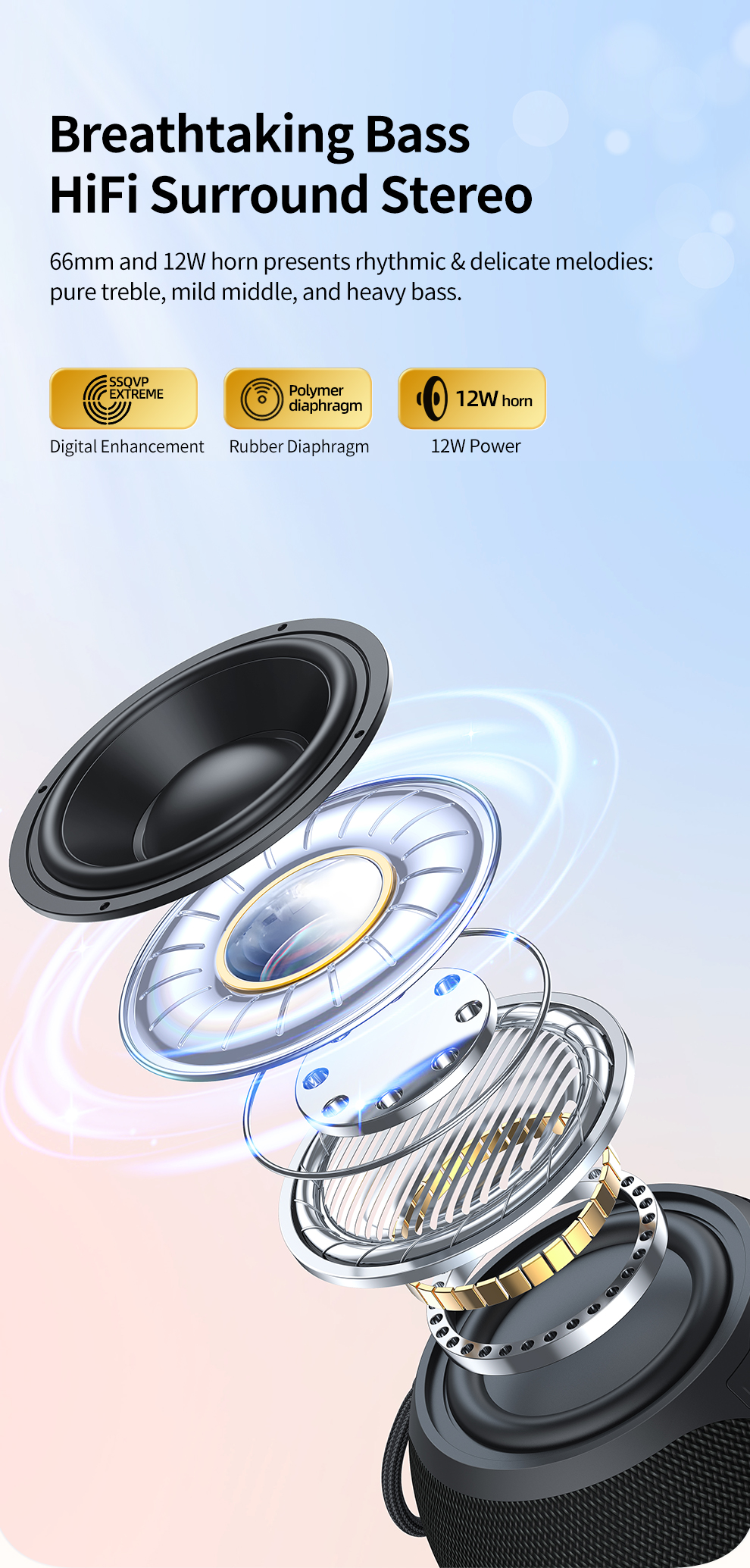 360° surround sound, IPX5 waterproof